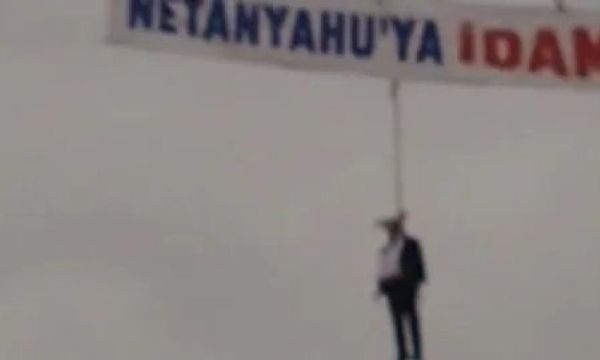 تركيا.. دمية ضخمة لنتنياهو معلقة على رافعة مكتوب عليها "حكم الإعدام"