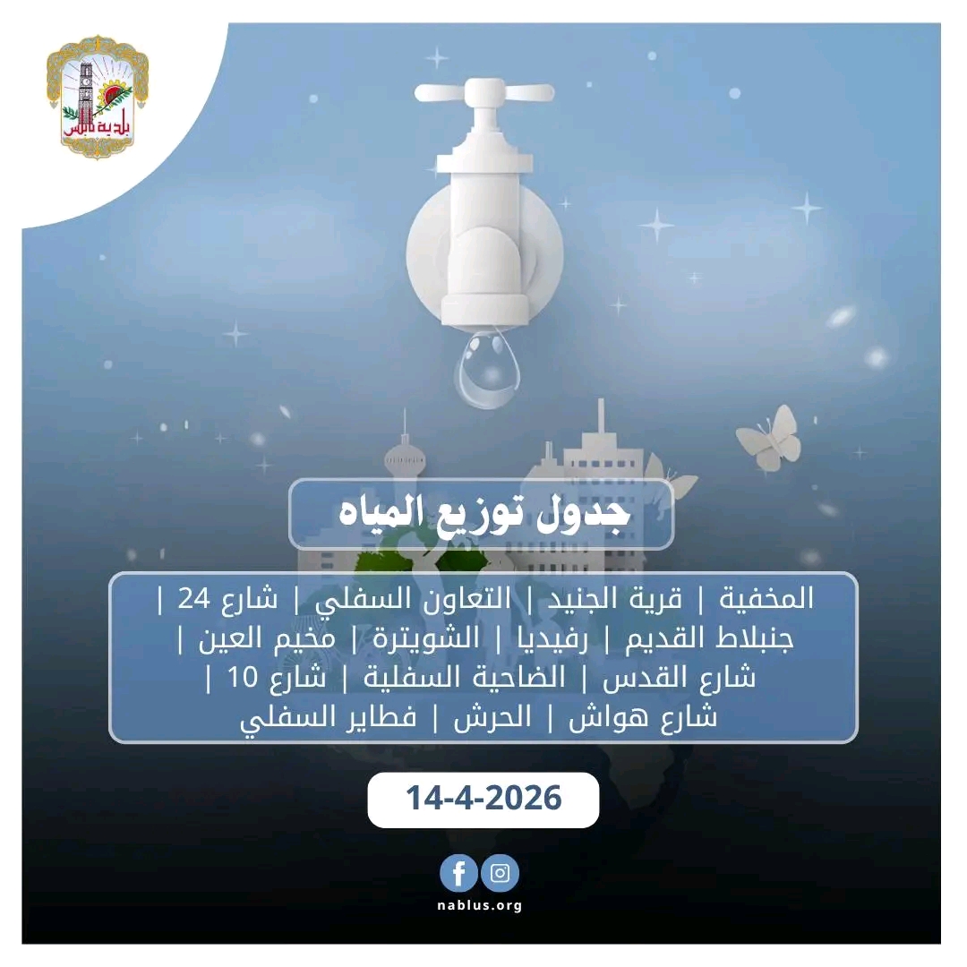 جدول توزيع المياه في نابلس لليوم الثلاثاء 14-4-2026