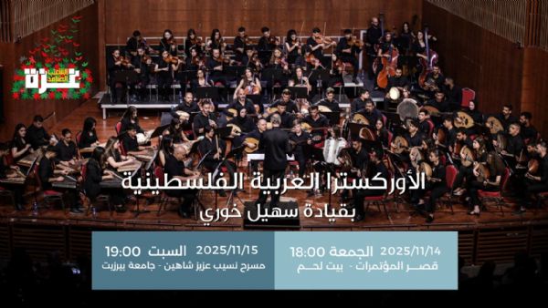 رام الله – بعنوان "غزة الشعب الصامد"، ينظّم معهد إدوارد سعيد الوطني للموسيقى عرضين للأوركسترا العربية الفلسطينية بقيادة الفنان سهيل خوري، أولهما في مسرح قصر المؤتمرات في مدينة بيت لحم يوم الجمعة 14 تشرين الثاني (نوفمبر) 2025، والثاني في مسرح نسيب شاهين جامعة بيرزيت يوم السبت 15 تشرين الثاني (نوفمبر) 2025.