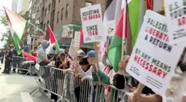 شهد ميدان Columbus Circle في مانهاتن تظاهرة حاشدة ضمن فعاليات "اليوم العالمي للتضامن مع الشعب الفلسطيني"، حيث تجمع مئات المشاركين رافعين الأعلام الفلسطينية ومرددين هتافات تدعو لوقف الهجمات على قطاع غزة.