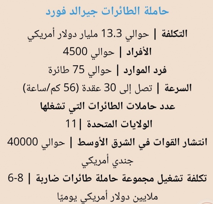 تعد حاملة الطائرات الأمريكية جيرالد فورد أغلى سفينة حربية بُنيت على الإطلاق، حيث بلغت تكلفتها حوالي 13.3 مليار دولار.