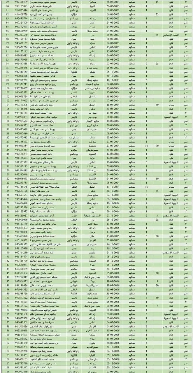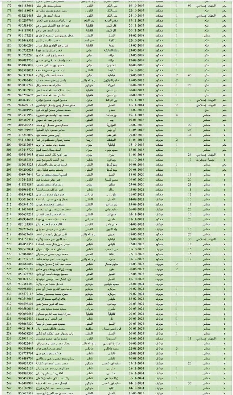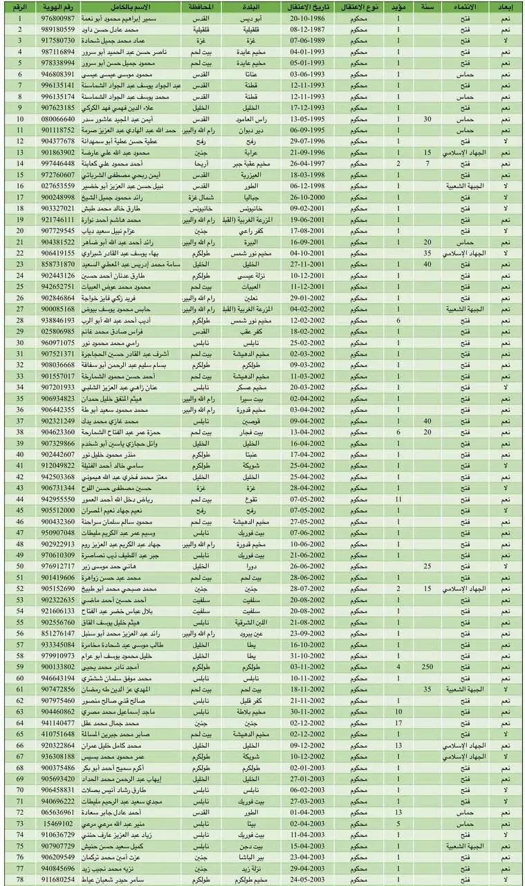 أعلنت هيئة شؤون الأسرى والمحررين ونادي الأسير الفلسطيني ومكتب إعلام الأسرى صباح اليوم الإثنين، عن القوائم الرسمية للأسرى الذين سيتم الإفراج عنهم وفقا للاتفاق المُعلن: