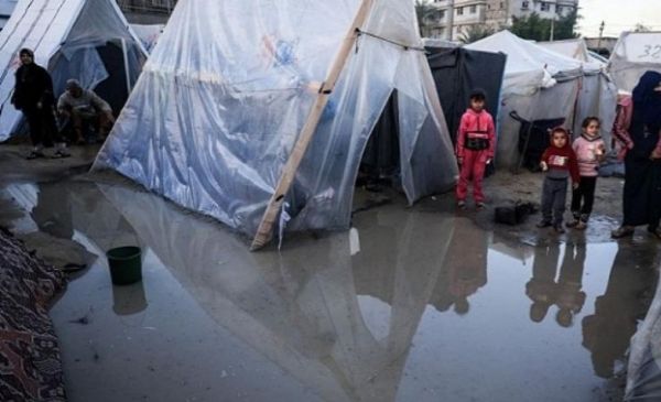غرق عشرات خيام النازحين جراء الأمطار في مواصي خان يونس جنوبي غزة