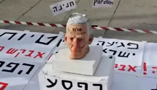 أزمة في تل أبيب بسبب مجسم يصور رأس نتنياهو مقطوعًا أمام المحكمة