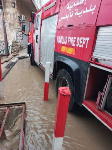 إطفائية بلدية نابلس في الميدان: فتح طرق مغلقة وضمان سلامة المواطنين مع استمرار هطول الأمطار