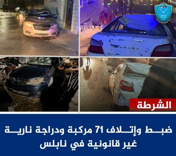 بالصور: إطفائية بلدية نابلس تتعامل مع حادث انقلاب مركبة